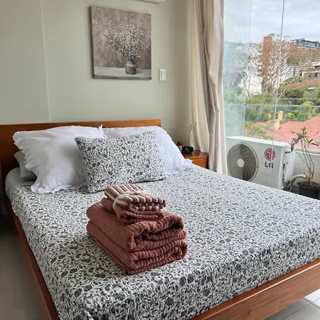 Апартаменты Confortable Monoambiente Equipetrol Santa Cruz de La Sierra с видом на город находятся в Санта-Крус-де-ла-Сьерра, всего в 20 минутах ходьбы от Торгового центра Ventura. Гостям предлагается отдохнуть у бассейна на крыше или посетить Баррио Экипетроль, расположенный всего в 350 метрах.